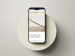 This identity redesign positions Radmore’s Antique Jewellery as a brand defined by traditional goldsmithery, art history, and the belief that ‘every piece tells a story.’ The typography, set in Mr. Eaves, has an approachable, contemporary feel, complementing the company ‘hallmark’ by reimagining traditional forms through a twenty-first-century lens. The design programme incorporates a rich colour palette of ‘Emerald Blue’, ‘Antique Gold’, and ‘Mother of Pearl’ that evokes timeless luxury, enhancing the aesthetic appeal of each piece. The copywriting is emotive and narrative-driven, bringing each piece’s artistry and purported connection to the wearer to the forefront. The result is a warm and inviting brand presence which makes collecting jewellery with Radmore’s feel personal and meaningful.